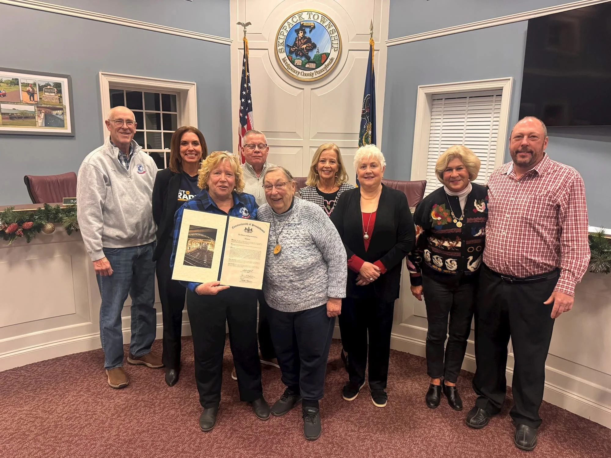 At the December 2025 Skippack Township Board of Supervisors meeting, Melissa Retano, District Office Director for Rep. Matt Bradford, presented Sebastian Riding Associates with an official citation celebrating the remarkable milestone of 50 years of life changing work in the community. Accepting the citation was Bannie Stewart, Co-Founder, Chris Hanebury, Executive Director and Frank Viall, Board President